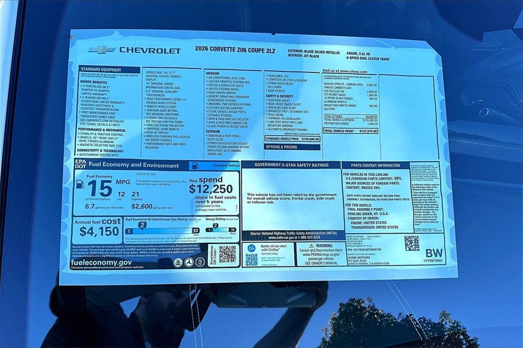 2026 Chevrolet Corvette Z06 2LZ
