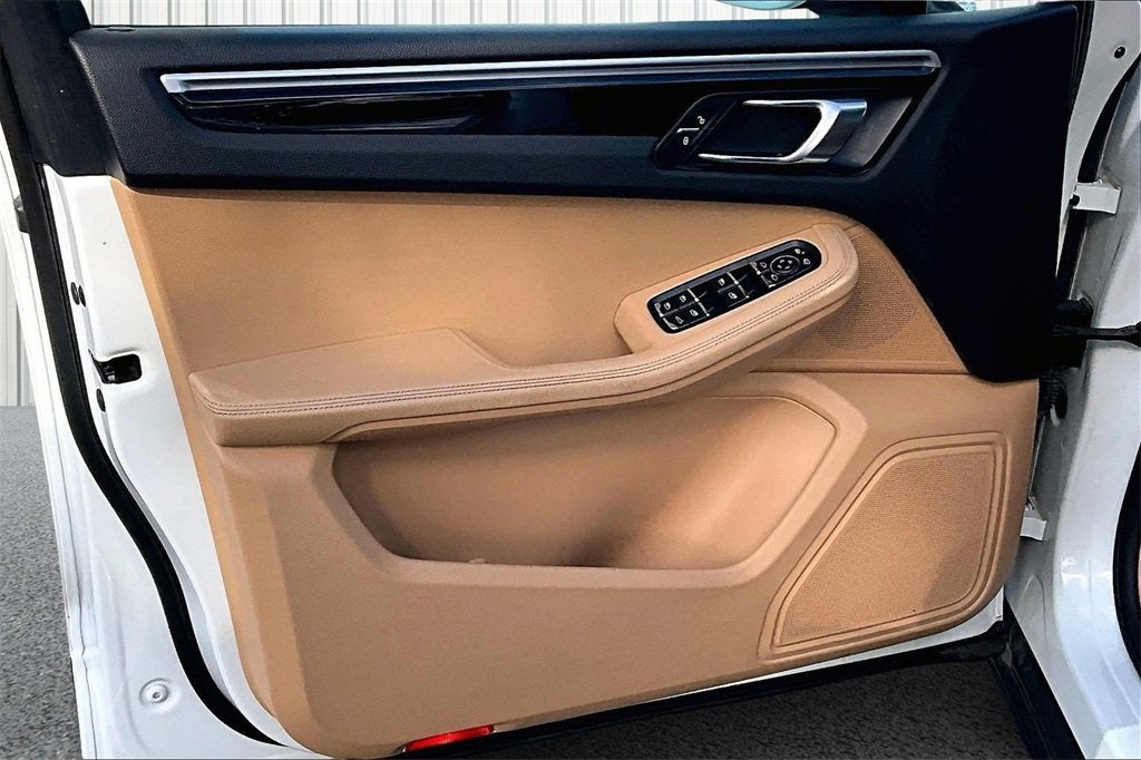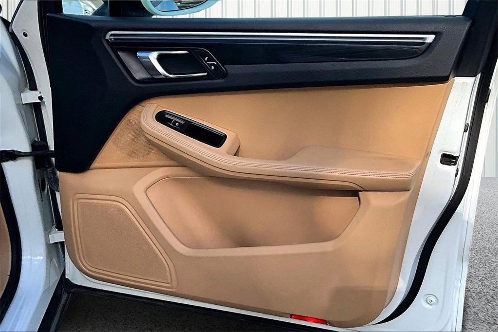 Inside, the cabin welcomes you with a refined and driver-focused layout finished in Saddle Brown interior upholstery, creating a warm, upscale atmosphere that still feels athletic. The supportive front seats, adjustable steering wheel, and intuitive driver information center ensure comfort and control on every drive. Practical touches such as dual front and rear cupholders, a sliding front center armrest, multiple 12V power outlets, and concealed cargo storage make the Macan easy to live with day to day. Climate comfort is handled by an efficient HVAC system with advanced air filtration, while features like HomeLink, illuminated vanity mirrors, and piano black interior trim elevate the premium feel.