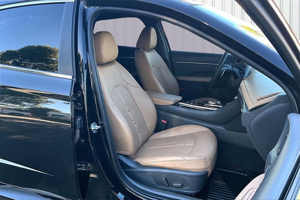 The exterior design is just as striking, finished in Phantom Black, which accentuates the Sonatas flowing body lines and modern styling. Highlights include LED headlights, LED taillights, LED daytime running lights, 18-inch alloy wheels, a panoramic sunroof, heated side mirrors with integrated turn signals, and a hands-free smart trunk, combining style with everyday practicality. Factory-installed accessories such as carpeted floor mats, a cargo net, wheel locks, and a rear bumper applique add further convenience and protection.