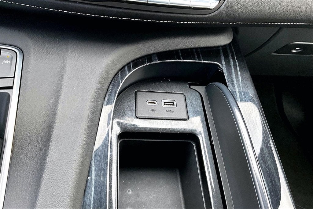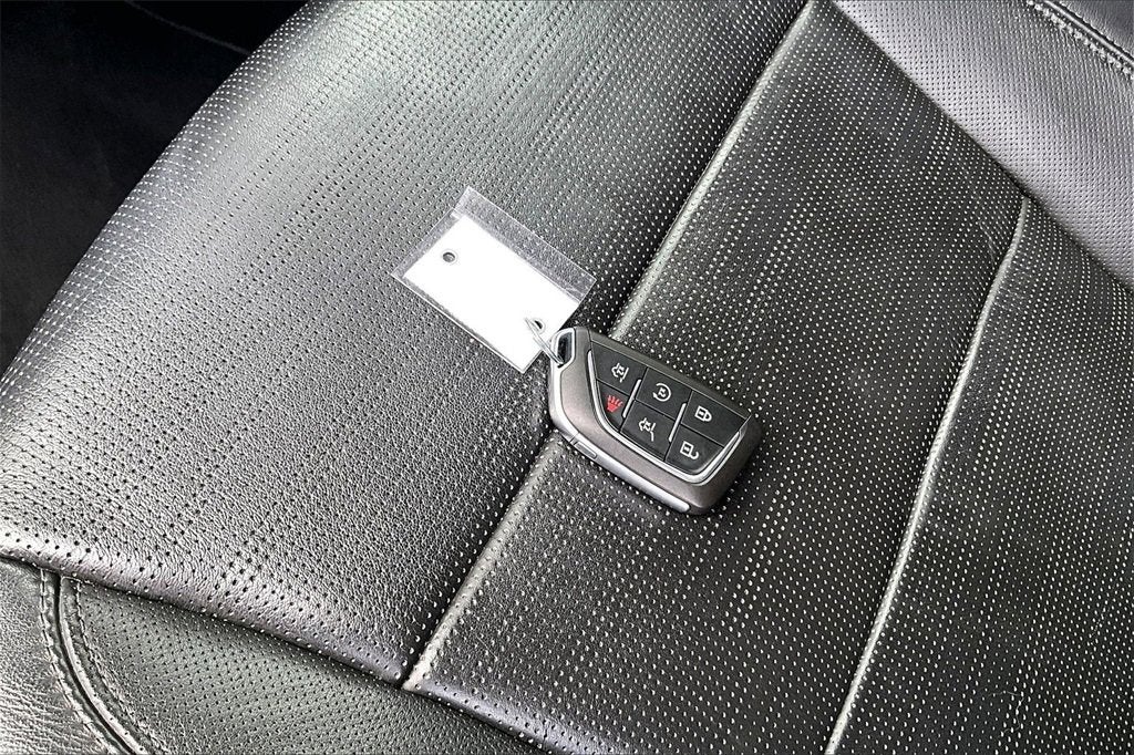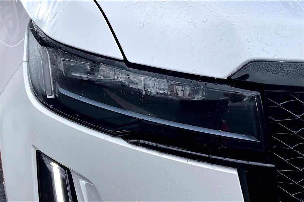 On the exterior, the Crystal White Tricoat finish pairs beautifully with the Escalade Sports blacked-out accents, illuminated door handles, LED lighting, and aggressive 22-inch Dark Android wheels, giving this full-size luxury SUV a commanding presence. Power retractable assist steps with perimeter lighting enhance both style and everyday convenience, while the hands-free liftgate makes loading effortless.