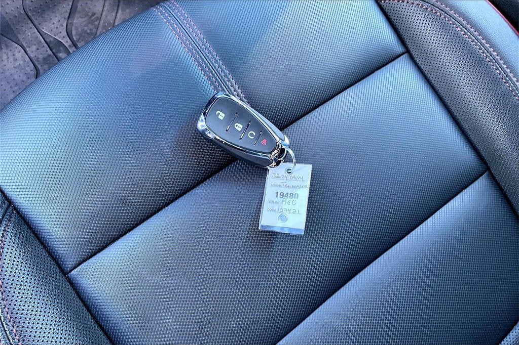On the exterior, this RS trim makes a strong statement with its striking Crimson Metallic paint, 19-inch high-gloss black machined aluminum wheels, and signature RS blacked-out styling elements. Details such as LED headlamps and taillamps, signature LED daytime running lights, dual exhaust outlets, black bowtie emblems, roof side rails, and deep-tinted rear glass complete the aggressive yet refined look that sets this Trailblazer apart.