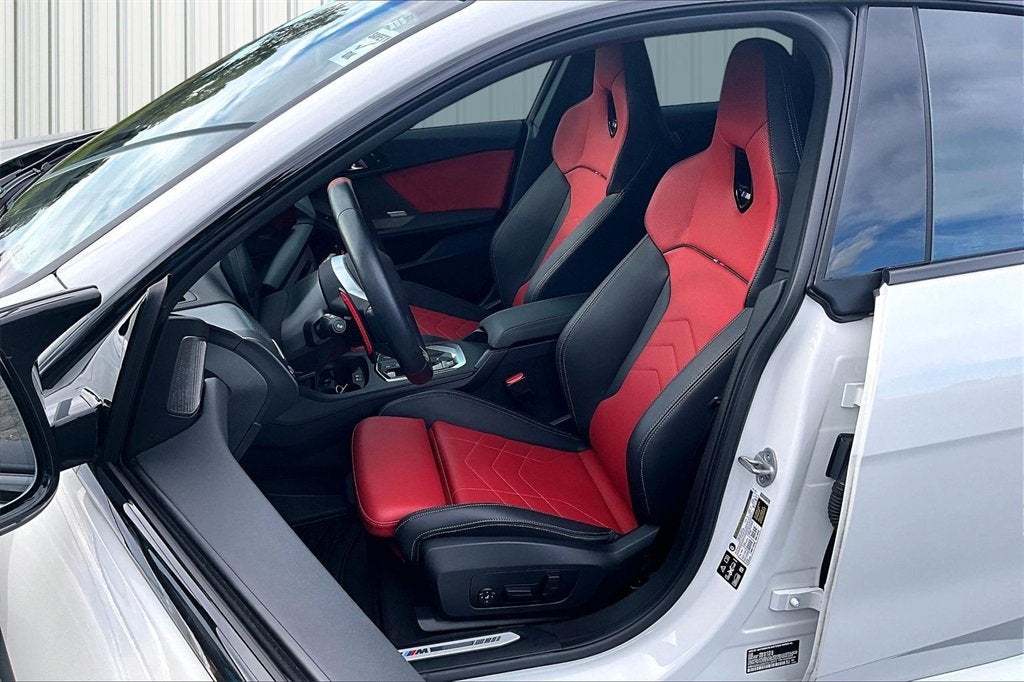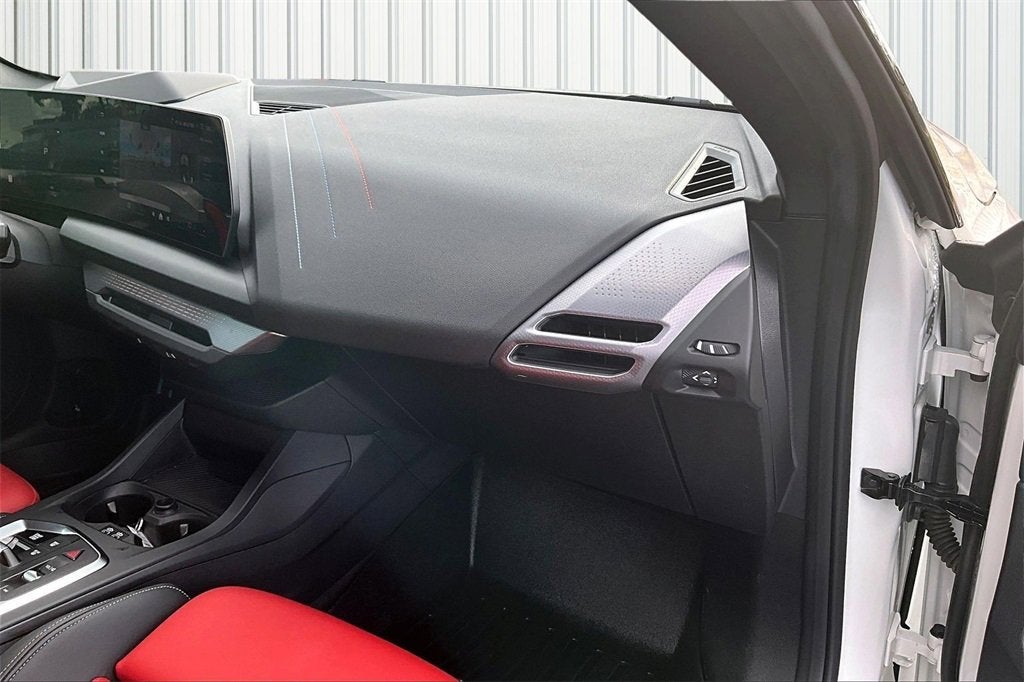 Inside the cabin, the M235 xDrive Gran Coupe delivers a true BMW performance-luxury experience. The interior is finished with red and black bicolor perforated sport seats, heated front seating, and a driver-focused cockpit that blends comfort with aggressive M design. The Premium Package enhances everyday enjoyment with a Head-Up Display, panoramic moonroof, Comfort Access keyless entry, wireless device charging, remote engine start, and Parking Assistant Plus. BMWs Curved Display with Live Cockpit Professional integrates navigation, vehicle data, and multimedia seamlessly through voice and touchscreen controls, creating an intuitive and immersive driving environment. Premium details like the anthracite headliner, illuminated aluminum trim, and auto-dimming mirrors elevate the cabins upscale feel.